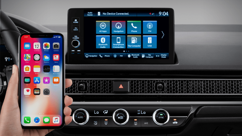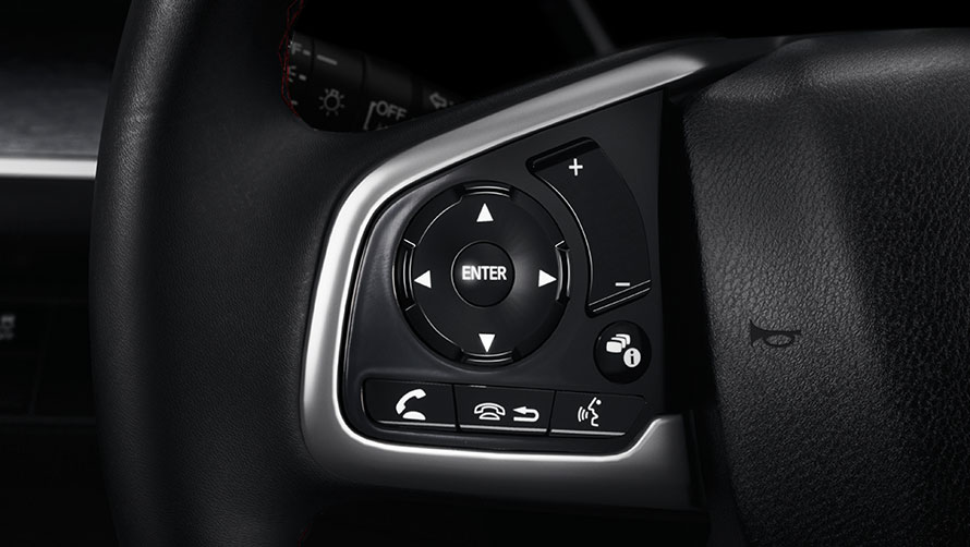 Chính giữa khoang lái là bảng điều khiển trung tâm, Civic sở hữu một màn hình 9 inch thông tin giải trí đa phương tiện, điều chỉnh cảm ứng, tích hợp công nghệ IPS đem đến hình ảnh rõ ràng và chính xác. Màn hình này có thể kết nối điện thoại thông minh, cho phép nghe nhạc, gọi điện, nhắn tin, sử dụng bản đồ hay ra lệnh bằng giọng nói, kết nối wifi và lướt web, nghe đài AM/FM.