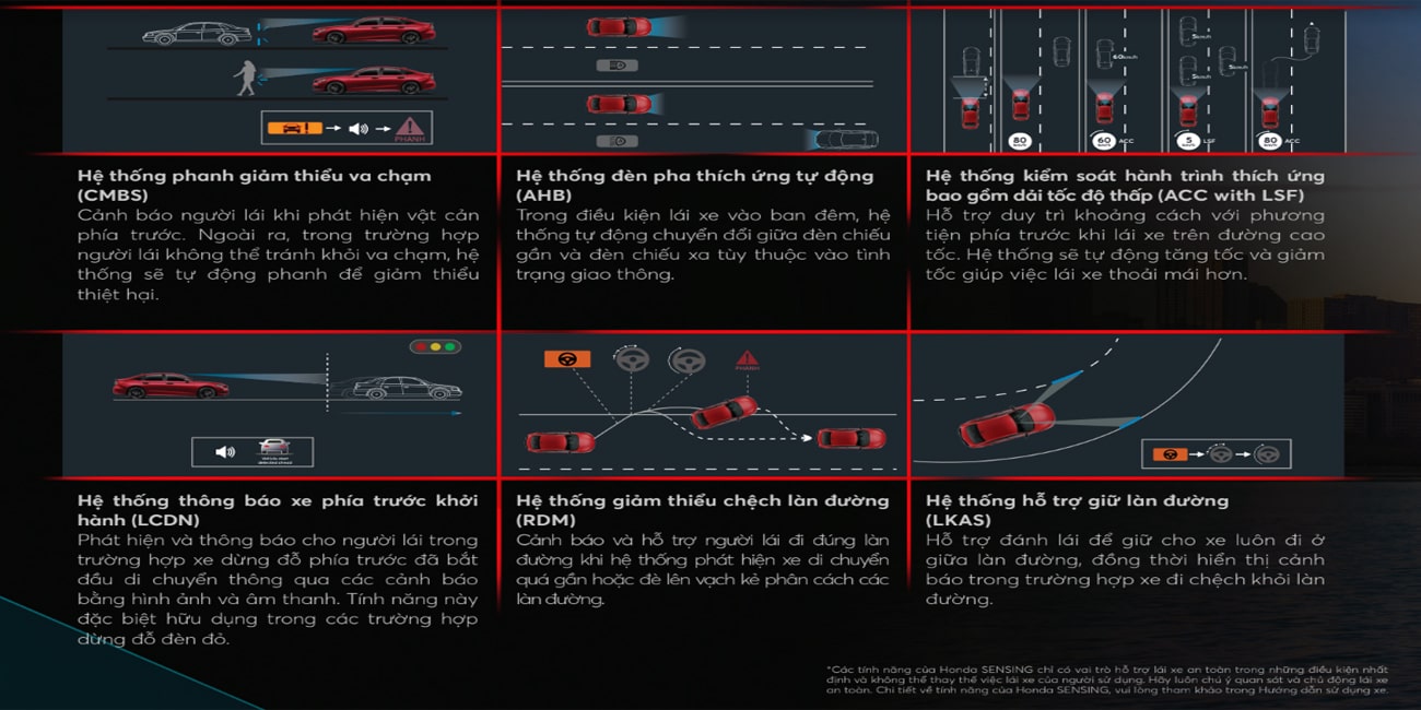 Hệ thống công nghệ hỗ trợ lái xe an toàn tiên tiến Honda SENSING hỗ trợ và bảo vệ bạn tối đa trong từng khoảnh khắc, để bạn an tâm vững tay lái trên mọi cung đường.